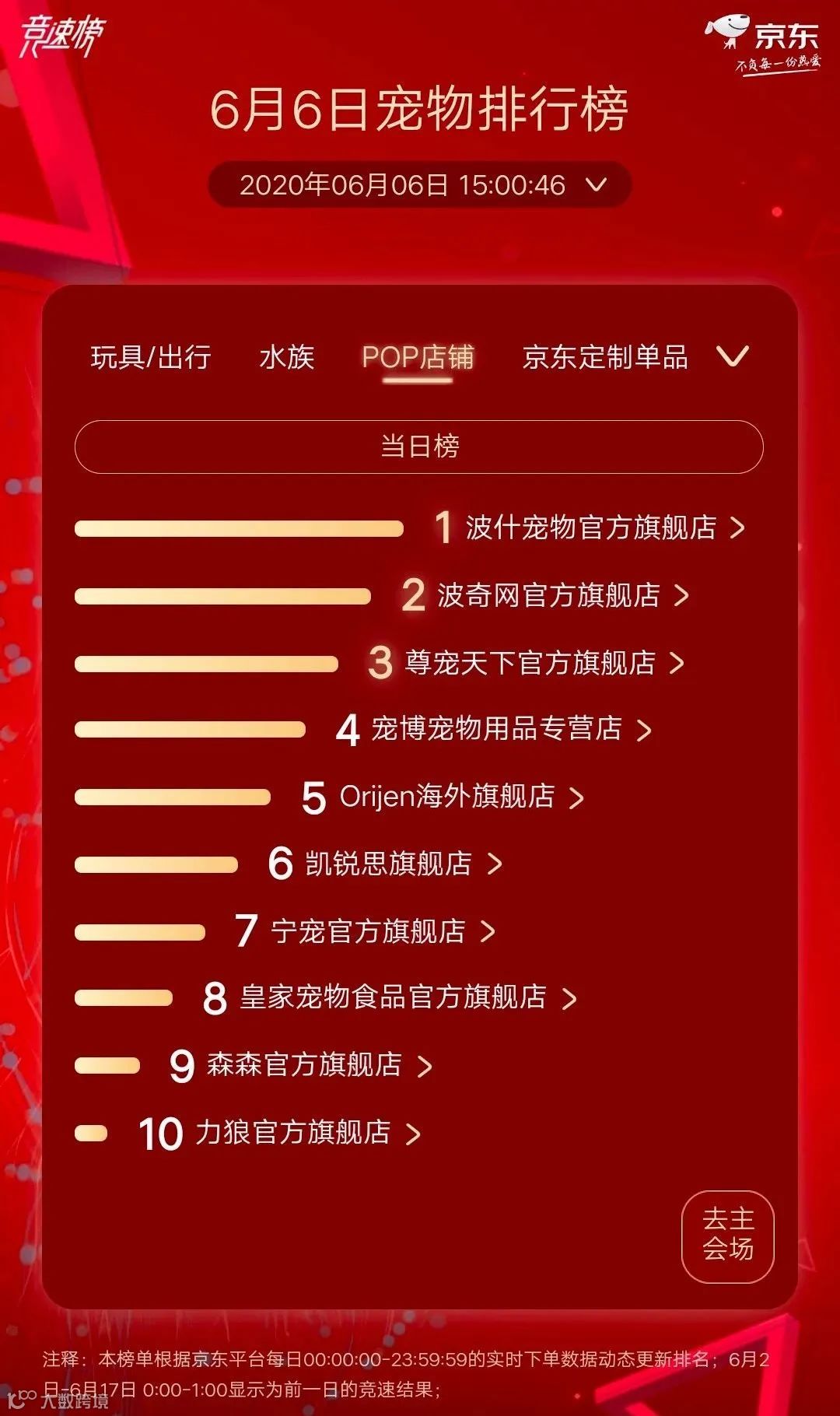 POP店铺最新TOP10排名: