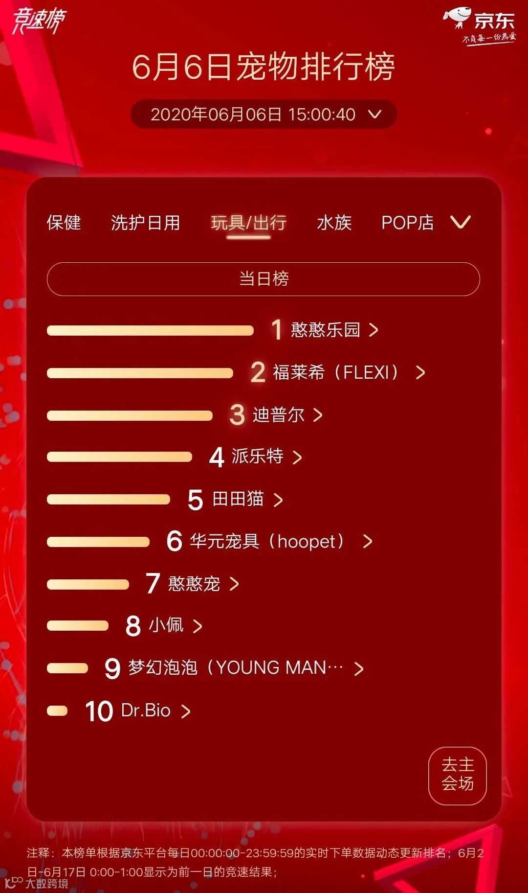 宠物玩具/出行品牌最新TOP10排名: