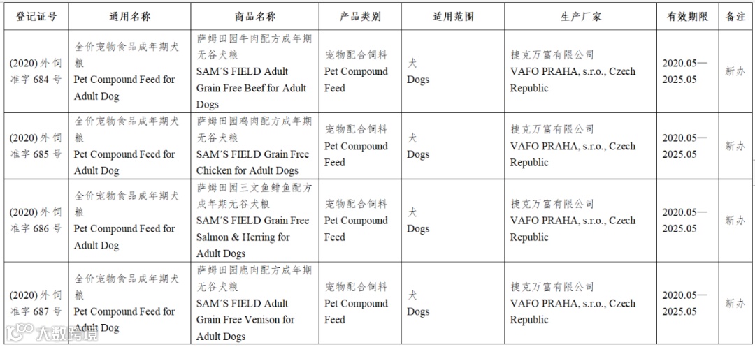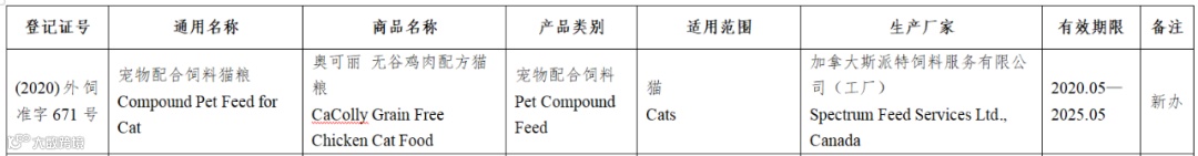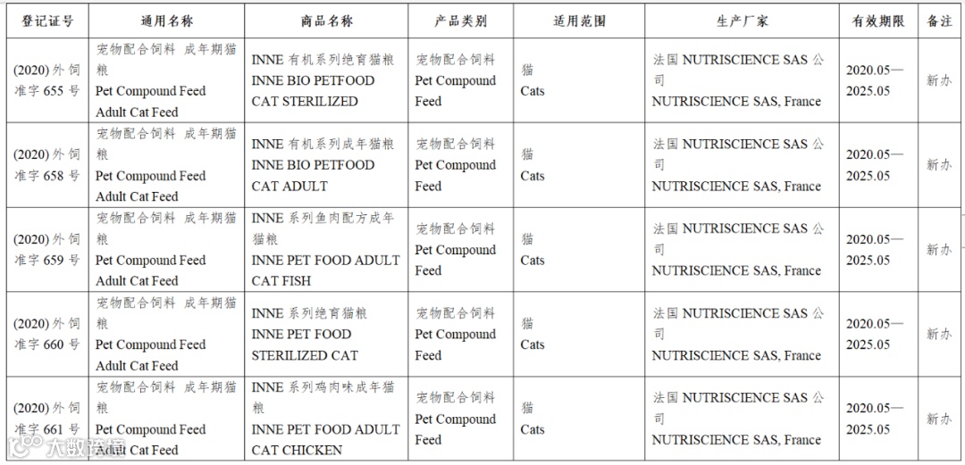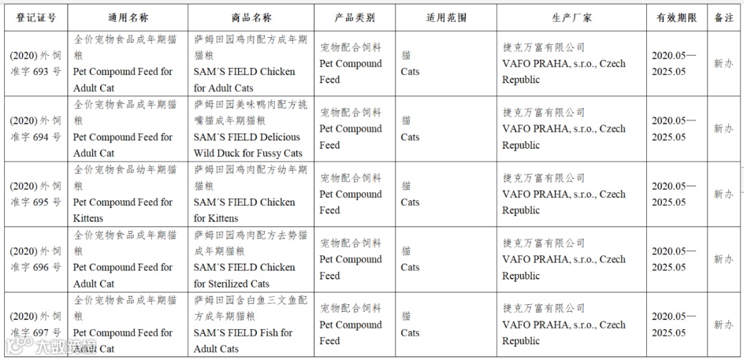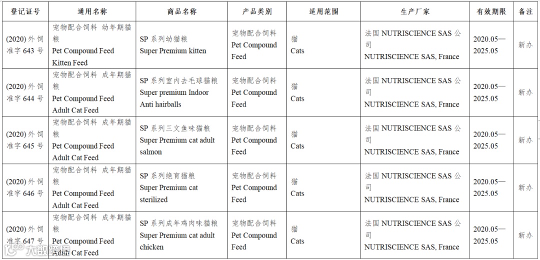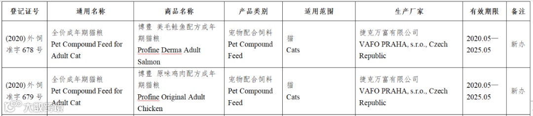 本次公告新增猫粮59个SKU、狗粮74个SKU,单一饲料3个SKU。