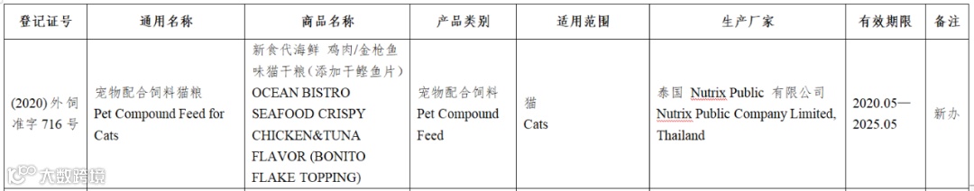 11、泰国 Nutrix Public 有限公司生产的宠物配合饲料猫粮——新食代海鲜鸡肉/金枪鱼味猫干粮(添加干鸡小胸肉块),新食代海鲜鸡肉/金枪鱼味猫干粮(添加干小虾),新食代海鲜鸡肉/金枪鱼味猫干粮(添加干鲣鱼片)。
