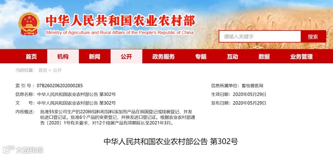 宠业家消息,近日农业农村部发布了第302号公告,根据《进口饲料和饲料添加剂登记管理办法》有关规定,批准芬兰杰能科国际有限公司等55家公司生产的220种饲料和饲料添加剂产品在我国登记或续展登记。