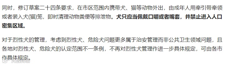 其实在宠物犬的相关规定中(例如各个地方的文明养犬条例),小编能查到的大多数安全措施都是以遛狗牵绳和犬类防疫(注射疫苗)为主,当然也是有部分地区的确有规定遛狗需要带嘴套,例如,2018年通过的《广东省爱国卫生工作条例(修订草案修改二稿)》中就有此类规定。