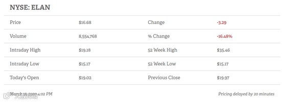 2019年7月18日,Elanco收购了Aratana,这是一家专注于狗和猫的创新疗法的宠物治疗公司。此次收购增强了Elanco在狗的食欲刺激剂、狗和猫的止痛以及美国和国际上其他疾病治疗领域的影响力。Elanco向Aratana股东发行了约720万股股票,价值2.38亿美元, 购买对价还包括高达1200万美元的或有价值权。