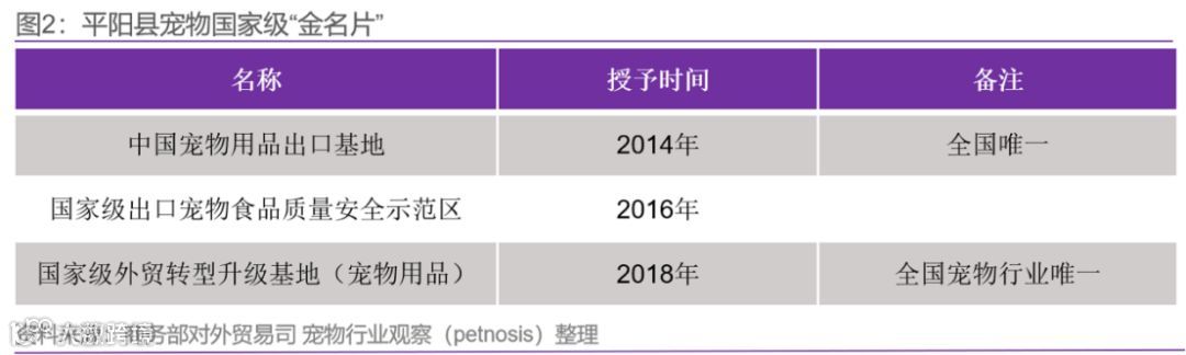 其实这两个行业有尤为密切的关系,制皮厂是高污染企业,市场嗅觉敏锐的平阳人,于是将目光转向了制皮边角料的制作与加工。宠物产业伴随着皮革制造业生长起来,如今至少20年历史。平阳人通过对制皮边角料的漂洗、成型、烘干等环节,制成高蛋白宠物食品,出口海外。2000-2005年诞生了一大批狗咬胶企业。2010年底,平阳县被浙江省商务厅与财政厅联合确定为第一批出口基地;2014年又摘得了全国唯一的“中国宠物用品出口基地”。这条产业发展路径其实类似中国宠物主粮之乡——南和,同样利用优质、价廉的原材料,奠定某一宠物细分市场的位置,不同的是一个做国外,一个做国内。