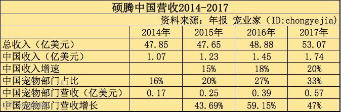 2017年硕腾中国宠物部门营收5700万美金,同比增长47%