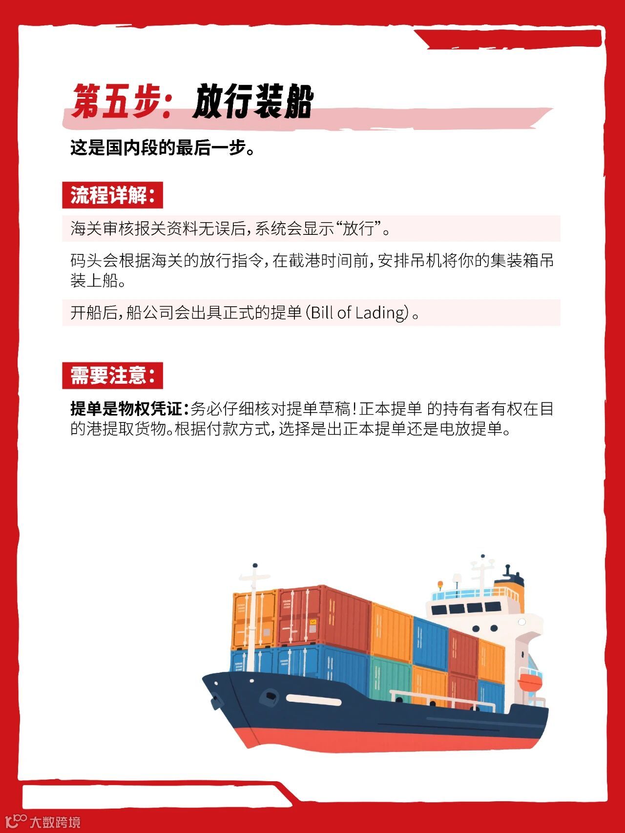 码头会根据海关的放行指令,在截港时间前,安排吊机将你的集装箱吊装上船。开船后,船司会出具正式的提单。