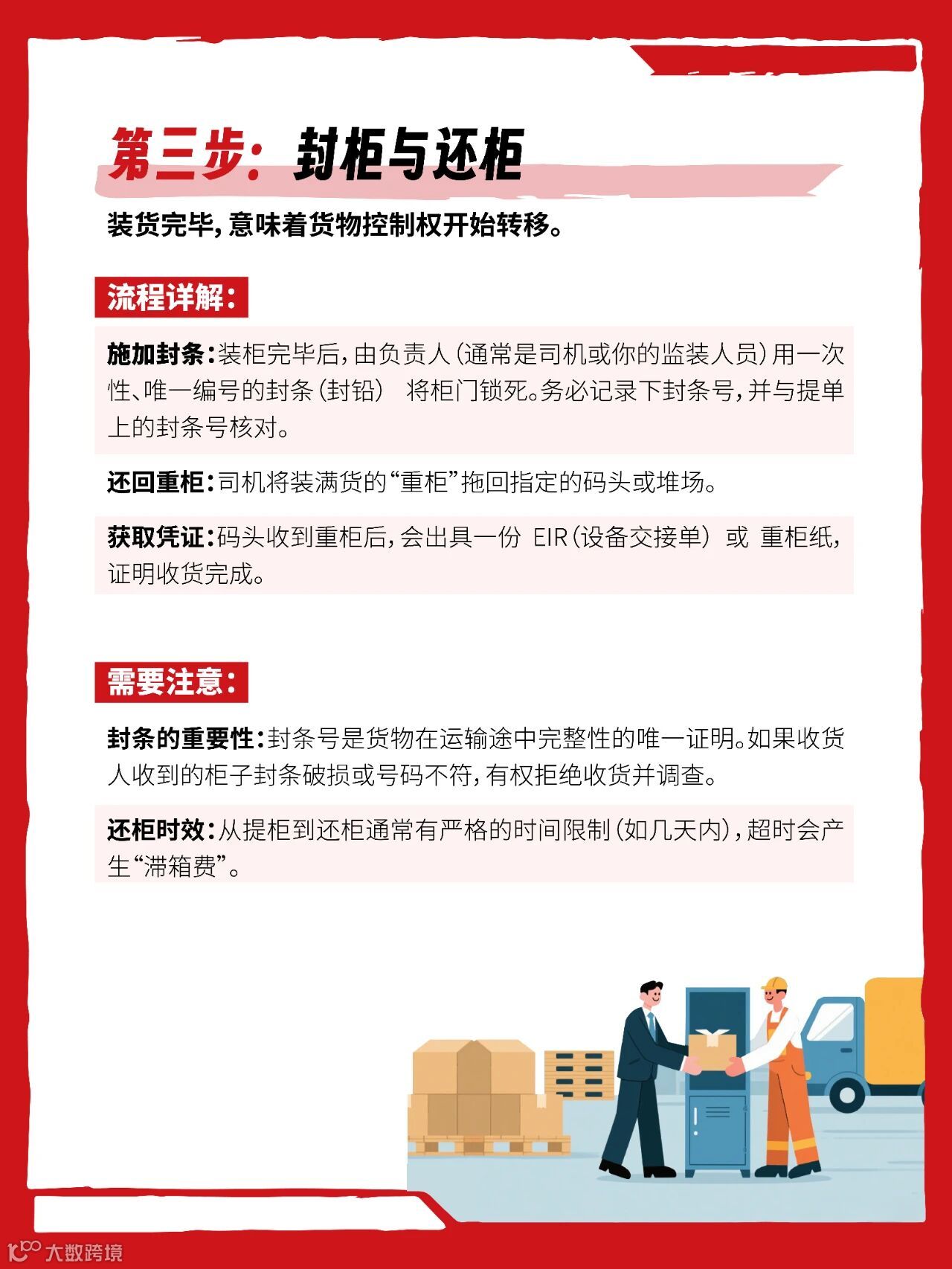 获取凭证:码头收到重柜后,会出具一份 EIR(设备交接单) 或 重柜纸,证明收货完成。