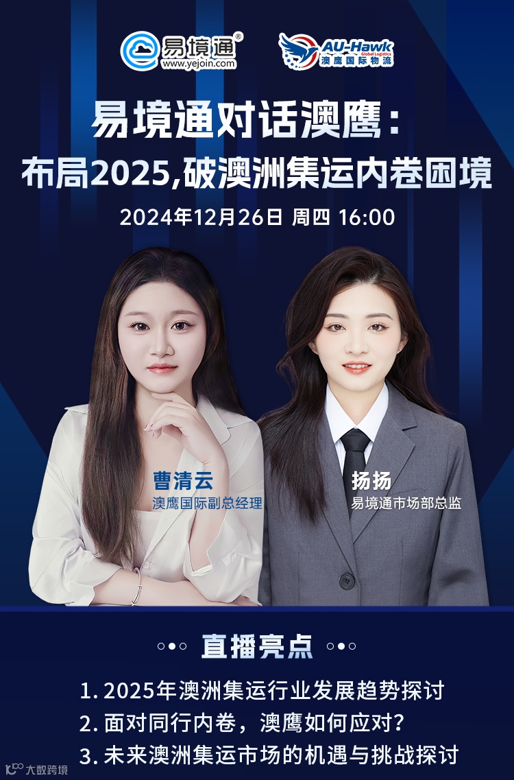 本次易境通特邀澳鹰(深圳)国际物流有限公司的副总经理曹清云进行直播连线,探讨了2025年澳洲集运市场的行业形势、竞争策略,以及未来会出现的机遇与挑战。