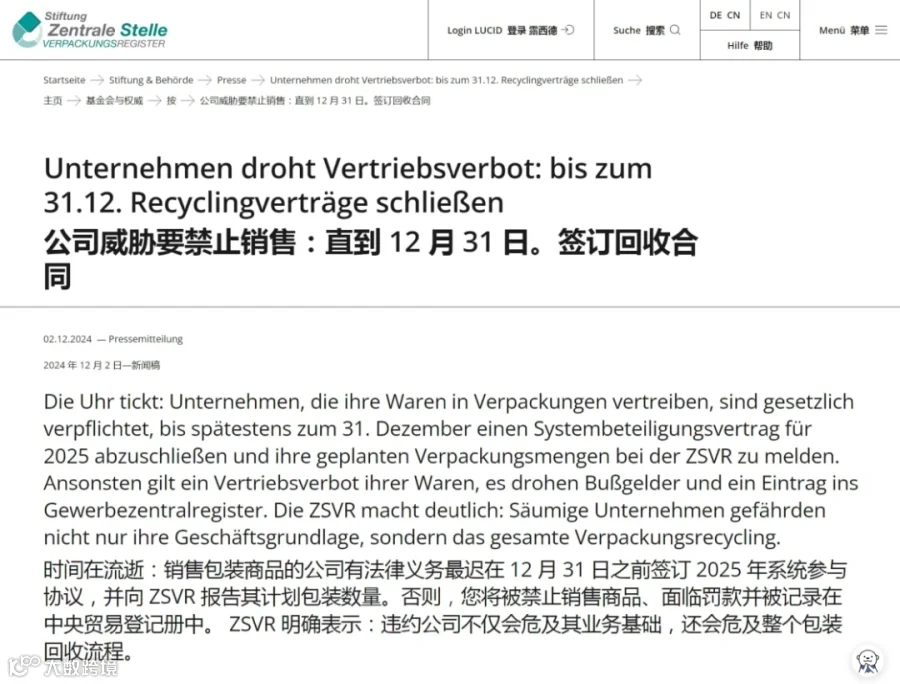 01德国包装法25年预申报年底前完成