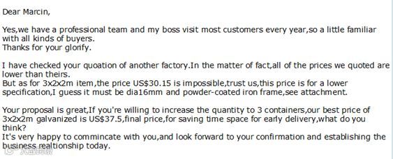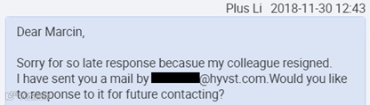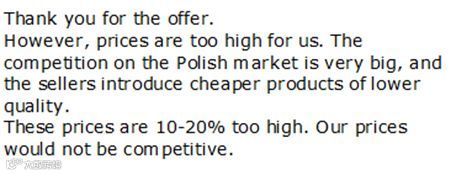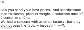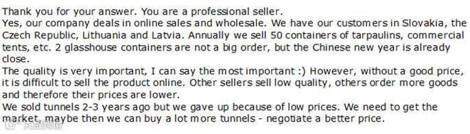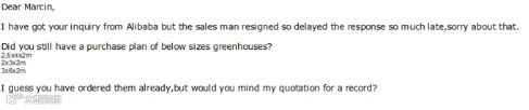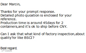 这个客户的询盘其实是接手离职同事的,一共大概有30个询盘,虽然大部分都是send me details或者give me the best price。其实对于很多含糊其辞的询盘,我并不需要花太多时间,把烂熟于心的产品规格逐一呈上即可。不过通常结尾我都会抛个问题,你们公司网址方便给一下吗?你们做电商零售还是实体店还是批发商?等等...多一点信息就多了一个渠道了解对方,也是通过问题留尾的这种方式提高客户回复的机率。我在逐个回复这些询盘的时候,有一个询盘引起了我的注意:2018年9月18号的询盘,客户介绍了自己的名称,市场分布,还有询价的产品规格,以及询盘目的:换新供应商!虽然询盘看起来很对口很专业,但是我接手的时候已经过去两个多月了。如果换成是追女朋友,估计都跟人家跑了。不过,对于任何询盘,都不要随便放弃,更别说这样比较有诚意的了。于是,我发了第一封邮件:对于已经把自己介绍得很清楚的客户,也就没有拐弯抹角。我先试探性地问他目前是不是跟别人跑了,如果跑了,能不能让我进一下备胎名单,没准以后能顺利上位。客户第一次回复我:我紧接着回复到: