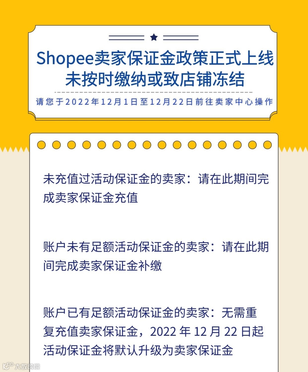 据 Shopee 消息,为进一步维护健康有序的交易环境、引导卖家合规经营、保障买家购物体验,Shopee 于 2022 年 12 月 1 日起正式推出 Shopee 卖家保证金。
