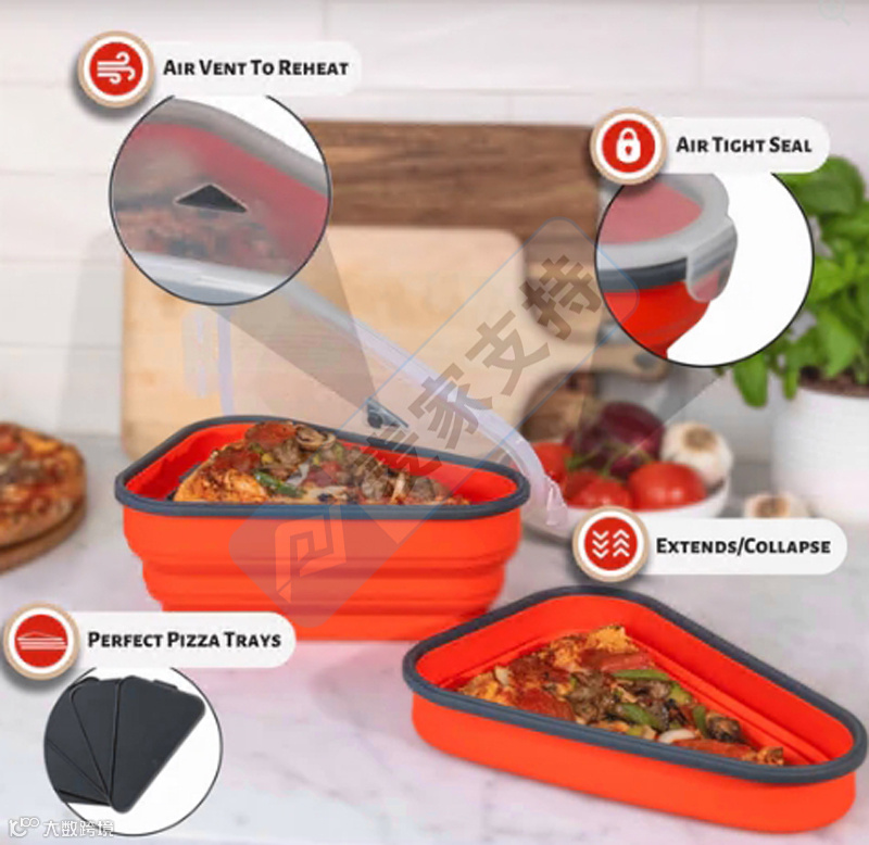 Pizza Pack硅胶折叠披萨盒可以折叠和展开,方便存放和携带。折叠后,可以节省大量空间,非常适合家庭或餐厅使用。每个披萨盒都配有5个可微波加热的分隔托盘,不仅可以防止披萨片在存放时粘在一起,还可以在重新加热单个披萨片时兼作披萨盘。除了作为披萨盒使用外,还可以用于外出野餐或旅行时的餐具,增加了其实用性和趣味性。