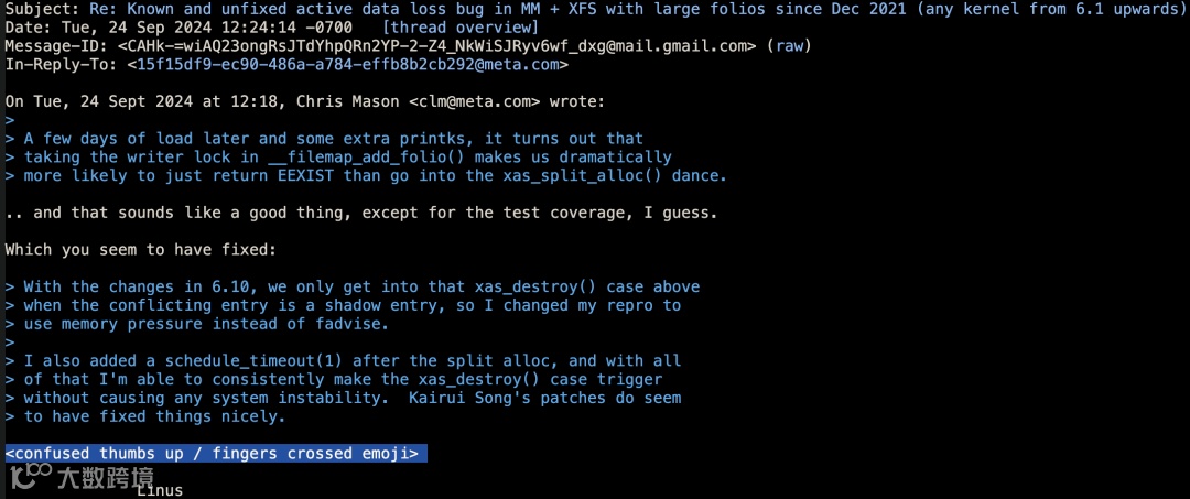 这一改进方案最终被合并进入后续的 Linux LTS(Long-term support)版本中,并获得了 Linux 之父 Linus Torvalds 的高度评价。