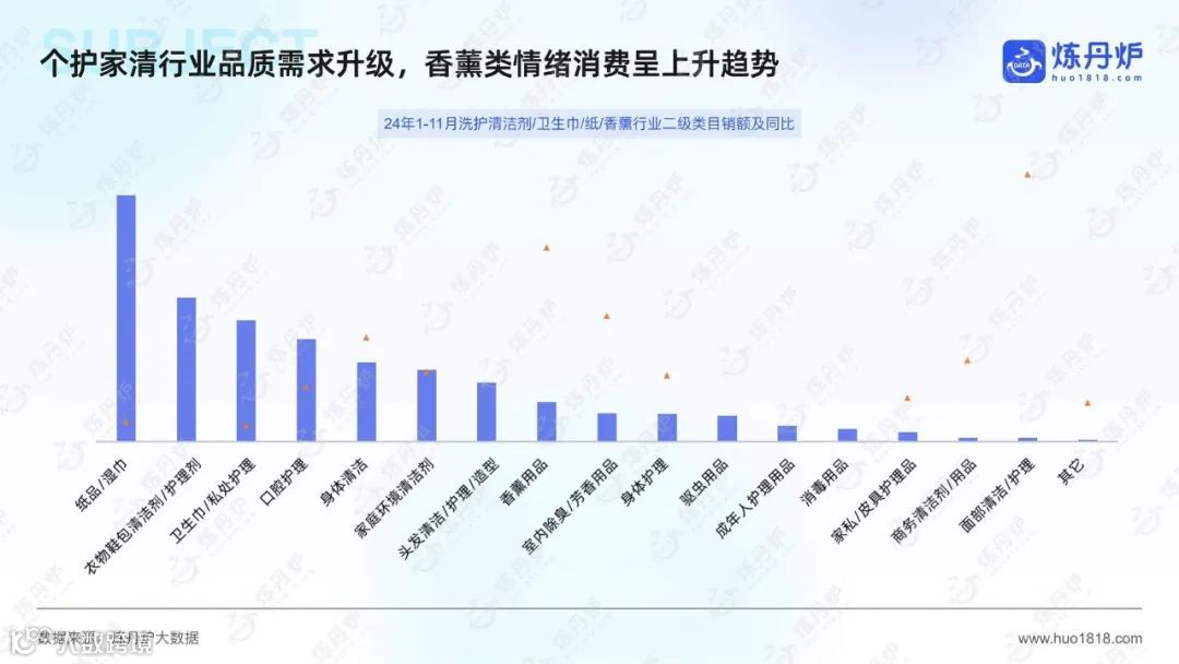 品质需求升级,香薰类情绪消费呈上升趋势。消费者关注个护产品“质价比”,高标准医用级商品受欢迎。