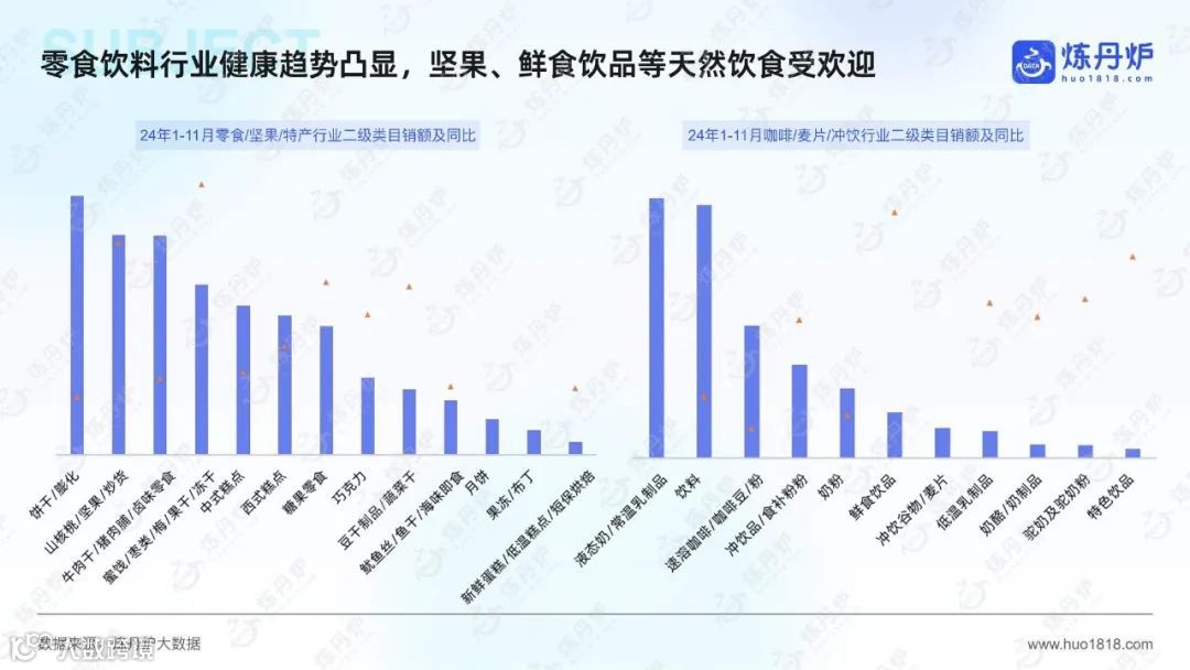 健康趋势凸显,坚果、鲜食饮品等天然饮食受欢迎。“轻养生”消费的持续渗透,带动健康零食、养生茶市场发展。