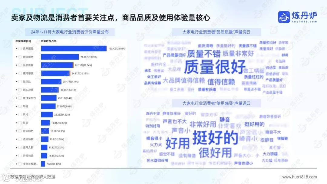 国补政策刺激效果显著,大家电行业活力爆发。卖家及物流是消费者首要关注点,商品品质及使用体验是核心。