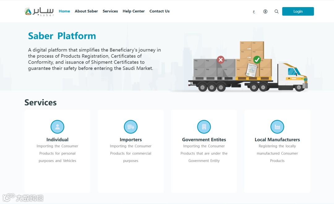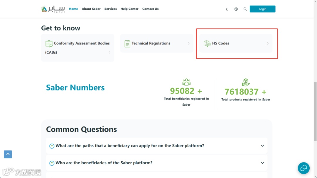 确认完海关编码后,登录SABER官网(https://Saber.sa/)。