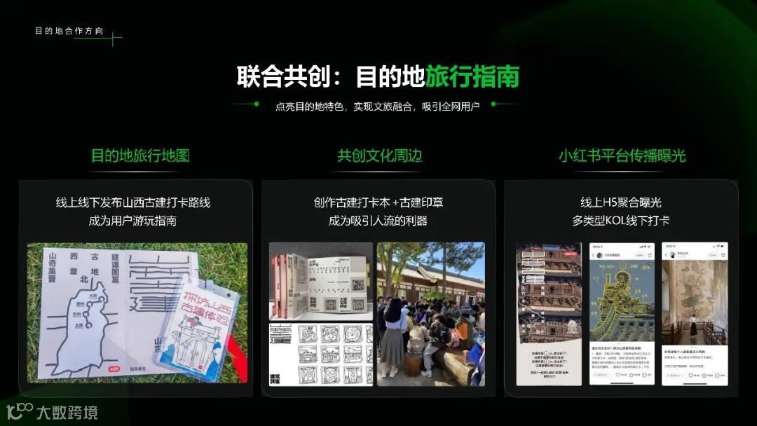 文旅营销策略包括产品能力、交易能力和营销能力。通过小程序、CID、口令码、直播等工具,小红书实现了种草营销洞察和智能化搜推联动。蒲公英平台的全站内容管理,帮助目的地实现长效种草、人群渗透和内容引爆。
