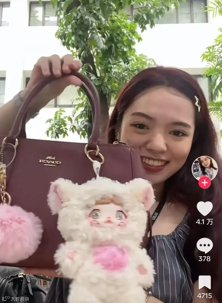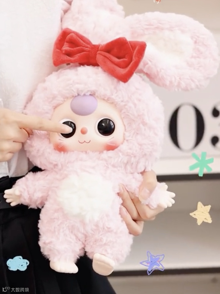 看到LABUBU爆火之后,通过给“糯米儿”IP研发搪胶毛绒版本,结果在东南亚市场爆红。在潮玩店上架后,被抢购一空,在TikTok上的开箱分享也非常多。