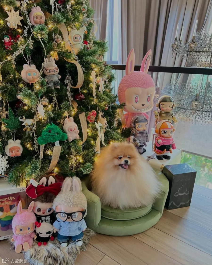 前段时间,Lisa还晒出了一棵「Labubu圣诞树」,将潮玩珍藏都挂满圣诞树,还在圣诞树旁放满了Pop Mart不同的人气公仔。画面超震撼!