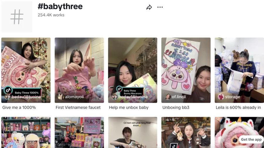 话题标签#babythree在TikTok上已经积累了25万多的短视频作品。