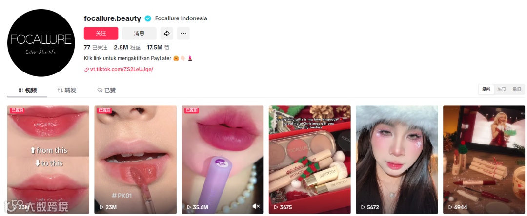 在TikTok,Focallure的全球化战略主要分为东南亚和美国两个板块进行。