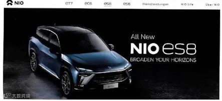 这些判决并没有阻止蔚来在其官网 www.nio.com/de 上继续使用‘eS6’和‘eS8’作为其汽车型号,如下所示: