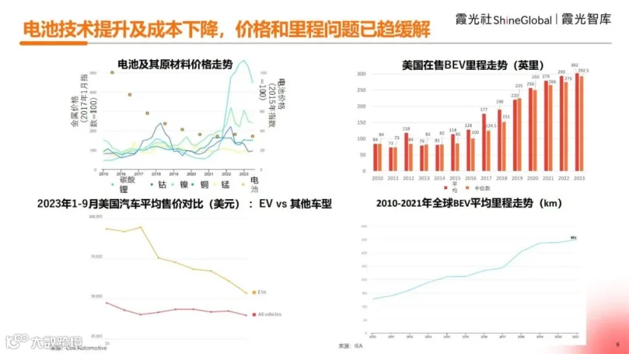 再看里程,以纯电(BEV)为例,不论是美国,还是全球平均的里程走势,自2010年至今,都在稳步增长。