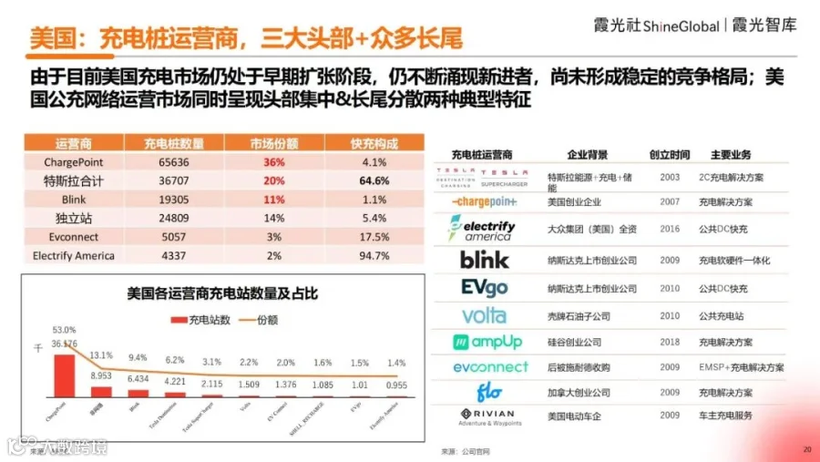 (十)美国:充电桩运营商,三大头部+众多长尾
