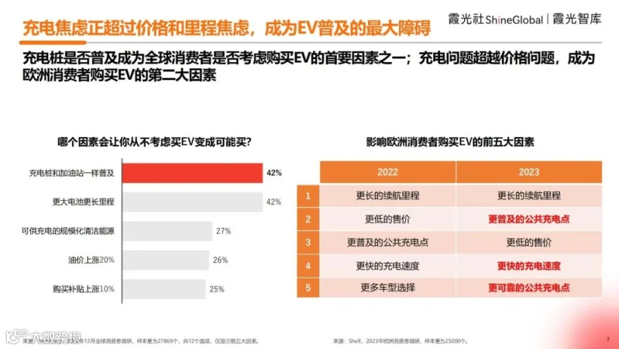 同时,对于欧洲消费者而言,影响其购买EV车的前五大因素中,除了价格和续航里程,另外三个都是跟充电相关,比如更普及的公共充电点位、更快的充电速度,以及充电站的可靠性。