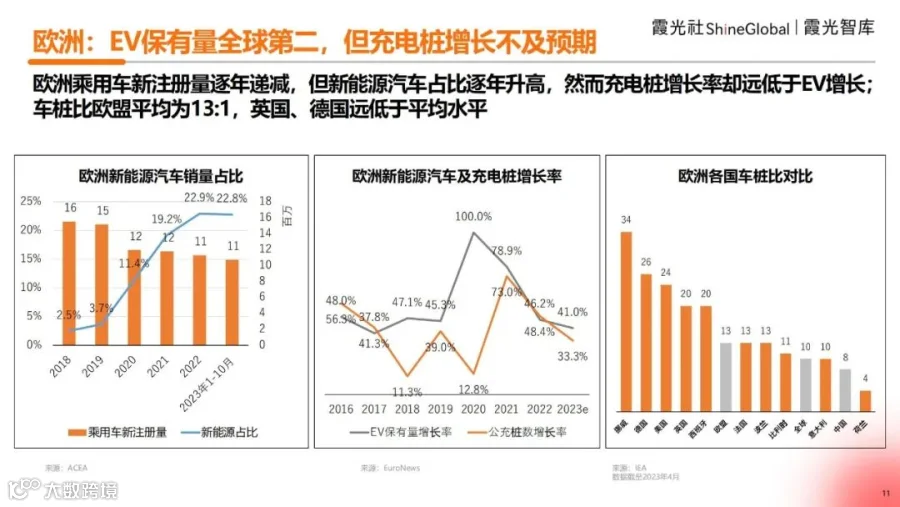 (一)欧洲:EV保有量全球第二,但充电桩增长不及预期