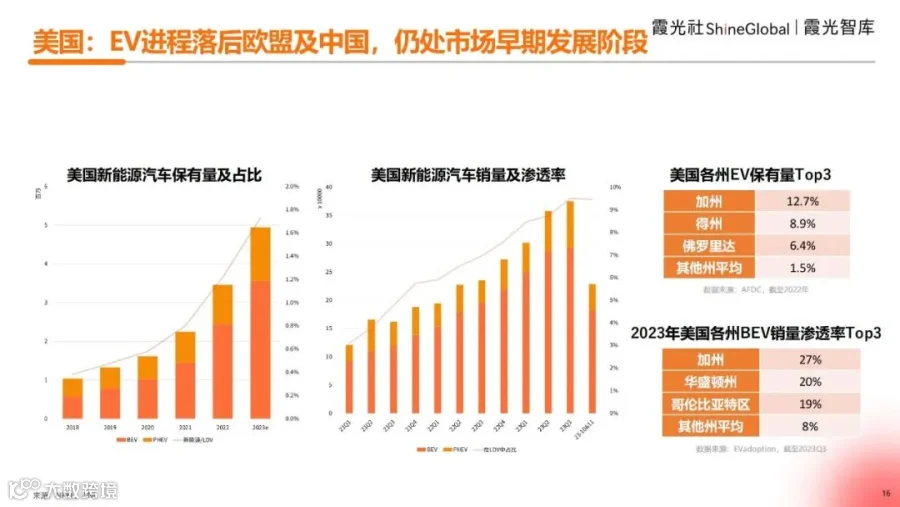 (六)美国:EV进程落后欧盟及中国,仍处市场早期发展阶段