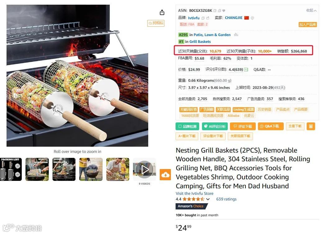 近30天销量(父体): 10,679,近30天销量(子体): 10,000+,销售额: $266,868