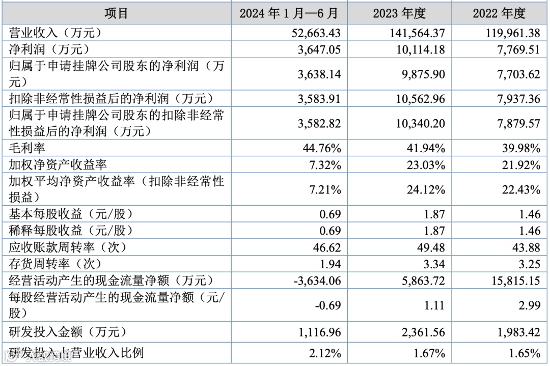 从公开资料来看,尚睿科技在2022年-2024年上半年一共实现了超30亿元的营业收入,除了2023年营收14.16亿元(归母净利润9876万元)外,尚睿科技2022年营收12.00亿元(归母净利润7704万元)、2024上半年营收5.27亿元(归母净利润3638万元)。