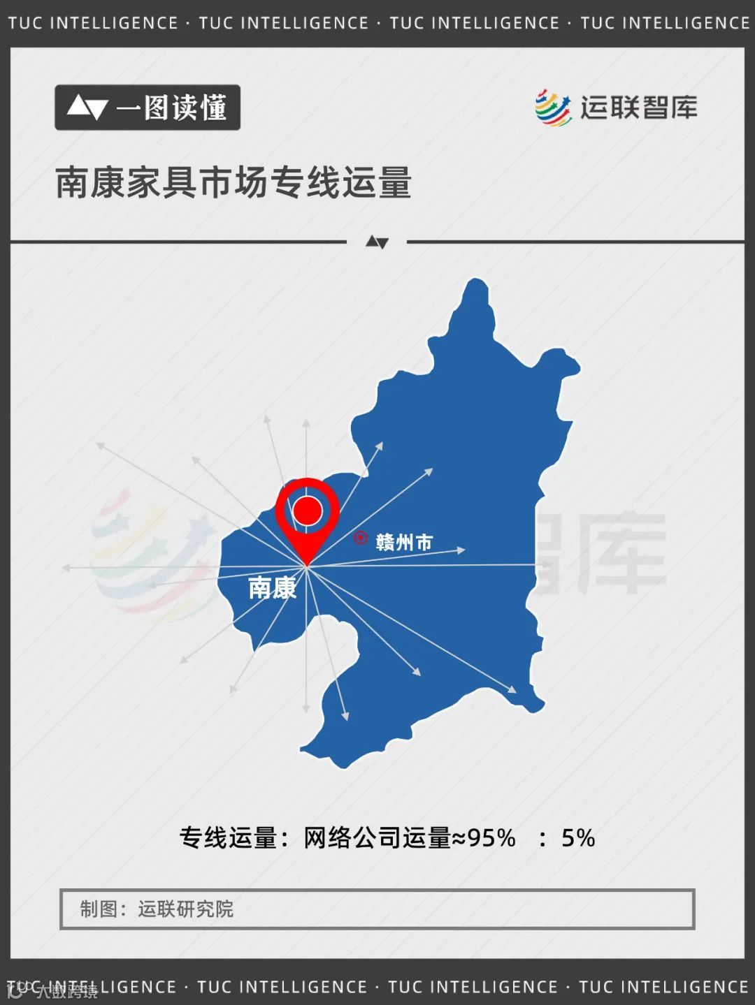 以南康家具市场为例,市场周边聚集了460多家物流企业,运营专线1350条,而绝大部分货源都被专线企业吸纳。这种局面也普遍存在于其他家具专业市场,也侧面印证了行业内所公认的家居物流90%的市场份额被专线公司占据的说法。