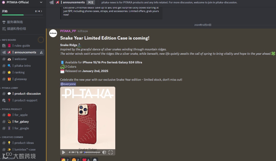 将小众进行到底,除了主流社媒平台外,PITAKA运营的社区还包含了Discord。这是一个即时通讯和VoIP平台,提供语音通话、视频通话、短信和媒体等通信服务。目前该平台每月拥有1.5亿活跃用户,主要由游戏玩家使用。PITAKA通过建立专属讨论组的形式,定时更新品牌推广内容,已成功在此聚集了一批忠实用户。