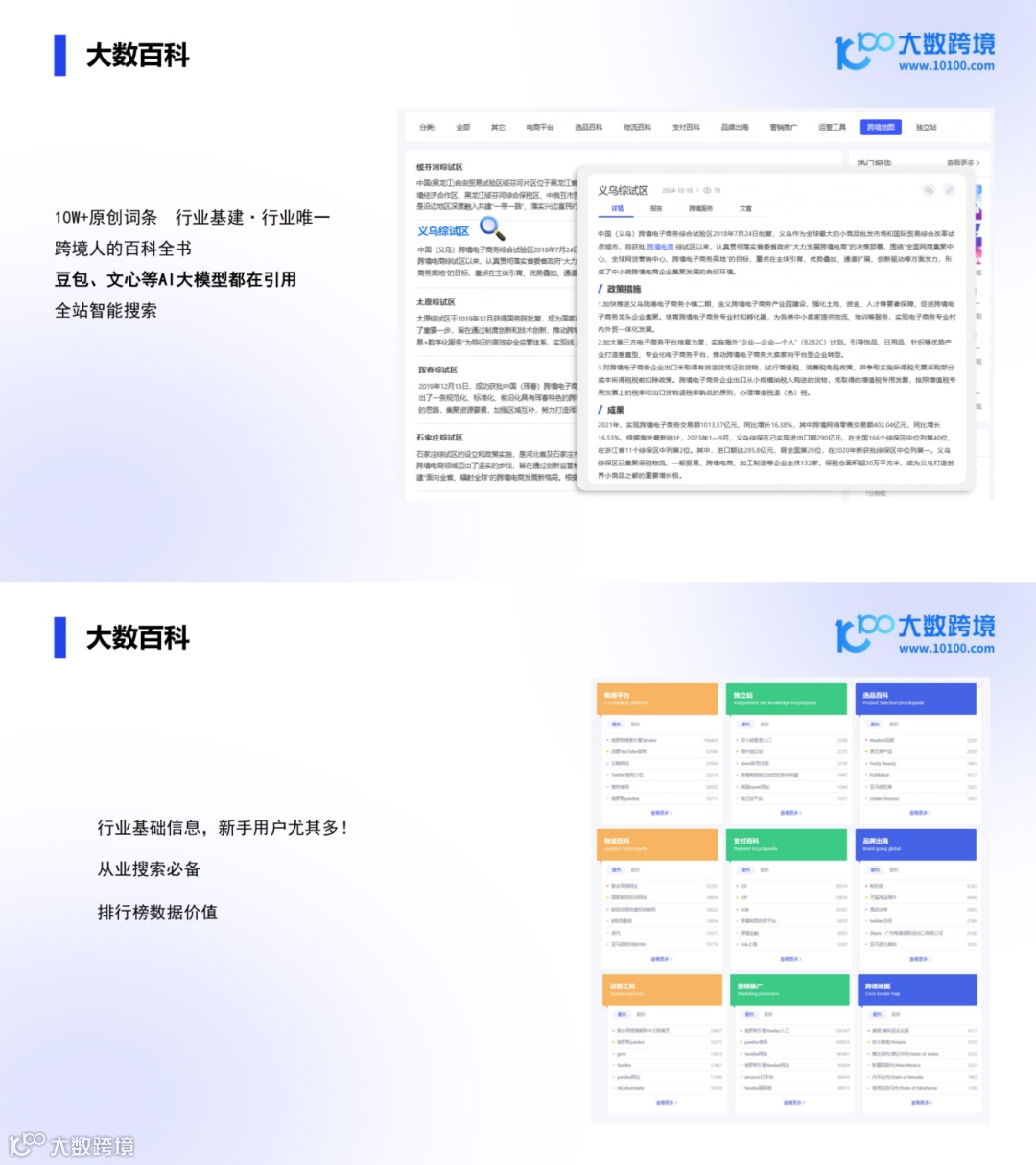 大数百科拥有超过10万条原创词条,是跨境从业者的必备工具。平台提供行业基础信息,尤其适合新手用户使用,支持全站智能搜索,帮助快速找到所需内容。
