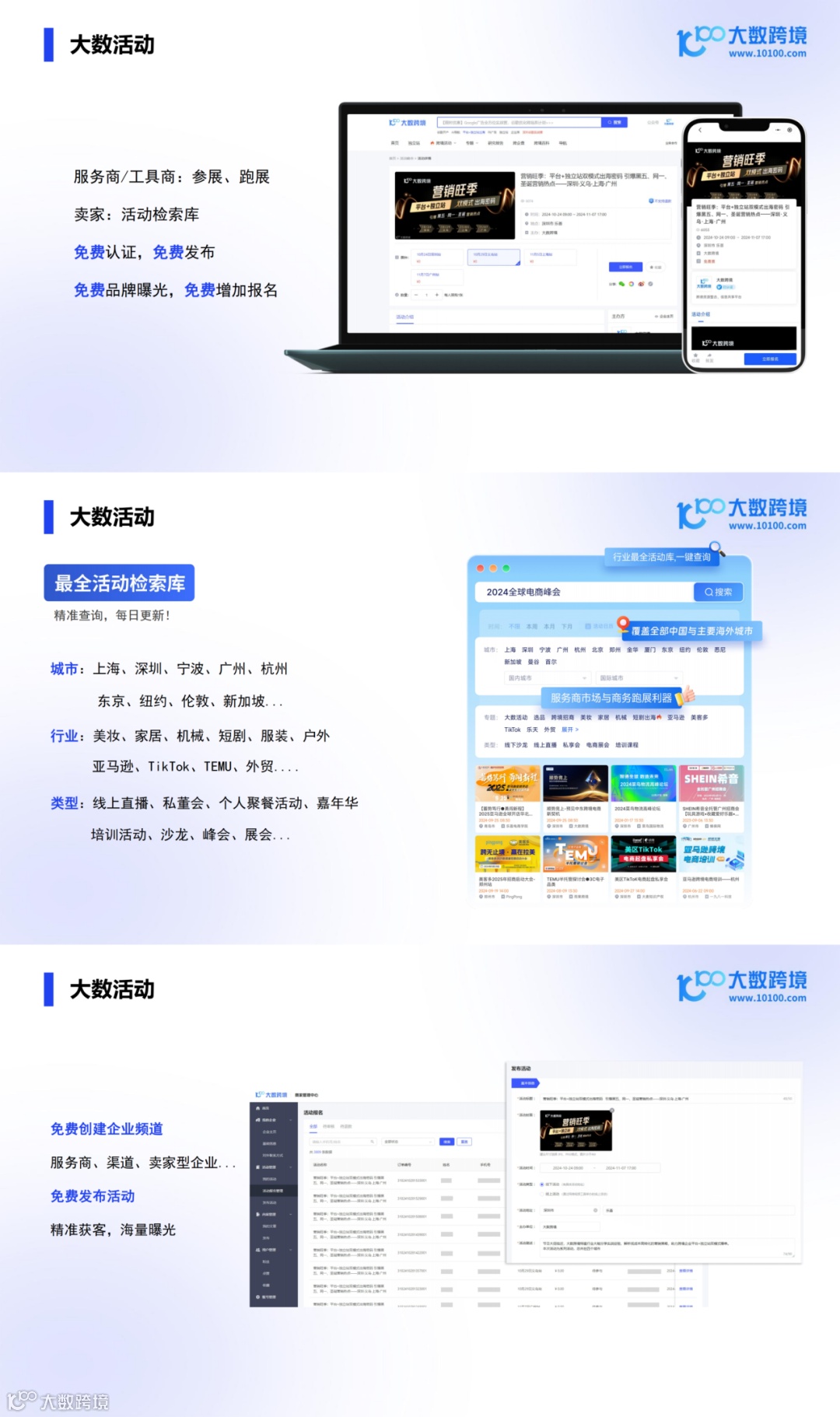 大数活动是大数跨境推出的全球跨境电商活动整合平台,免费为服务商、工具商和卖家提供精准的活动信息。