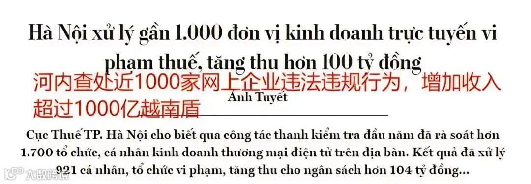 越南政府已在今年启动对电商平台的税务征收。截至2024年11月初,仅在河内市就已征收税款35万亿越南盾(约13.8亿美元),显示出政府对跨境和本地电商平台税收的严密管控。