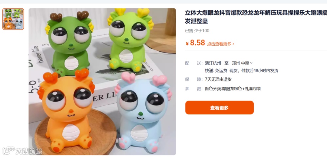 爆眼龙”捏捏玩具本是一个已经过时的生肖产品,在国内不到1元的产品却在“吐刀乐”的魔幻叫卖中成为海外爆品。