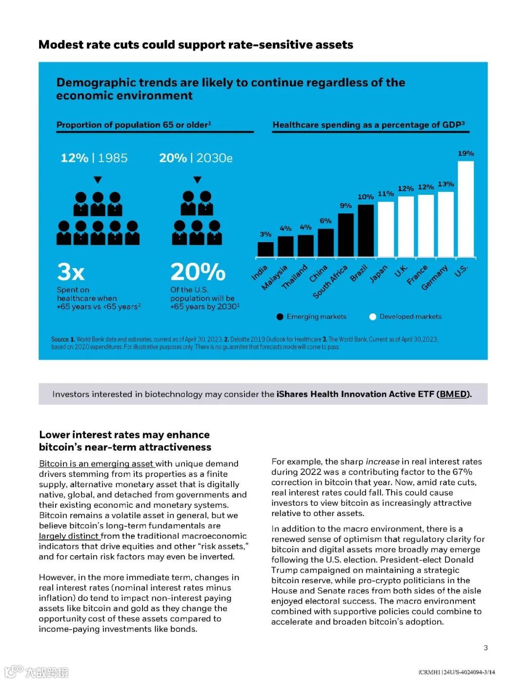 生物科技领域尤其受益于利率下降。报告指出,30%的新药预计将在2025年通过生成式AI技术发现,这将大幅缩短药物研发周期并降低成本。随着老龄化社会的加剧,个性化癌症疫苗、糖尿病治疗和阿尔茨海默症抗体疗法等创新药物的需求将显著增加,推动生物科技行业的并购潮。