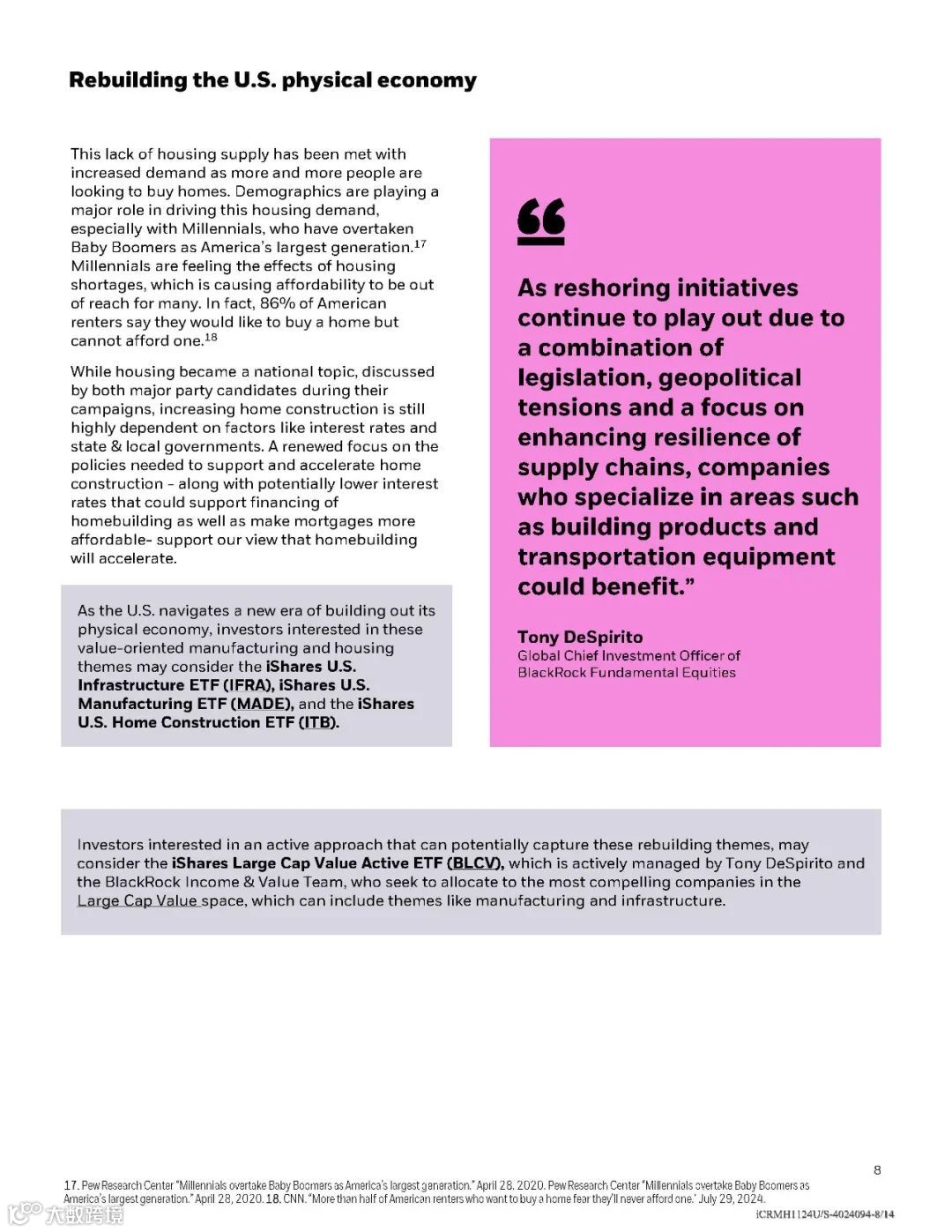 制造业回流也成为美国经济的重要趋势。疫情期间的供应链中断促使企业将生产迁回本土。报告显示,半导体公司已宣布在美国投资近4500亿美元,建设80多个新项目。随着2024年大选后的政策调整,制造业回流有望进一步加速。