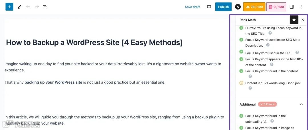 此外,Rank Math 的内容 AI 使创建 SEO 优化的内容变得非常简单,只需点击几下即可。详细的Rank Math教程,请戳