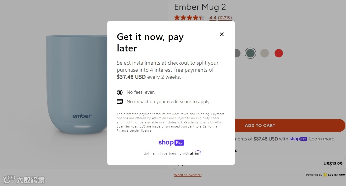 分期支付:对于一些价格较高的产品,许多消费者会因为一次性支付的高成本而犹豫不决,尤其是年轻消费者和初次接触高价品牌的消费者。Ember提供分期支付服务,让消费者可以将高价产品分摊成数期支付,这是能够降低消费者购买决策时的心理负担,从而对转化产生正面影响的。