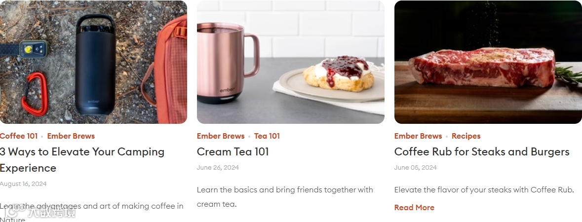博客营销:博客营销是提高自然流量的有效策略之一,Ember所发布的博客文章,大致可以分为两类,一类是食谱,提供了详细的制作方法,另一类则是应季的礼品推荐,其中还包括与其他品牌的合作推广。