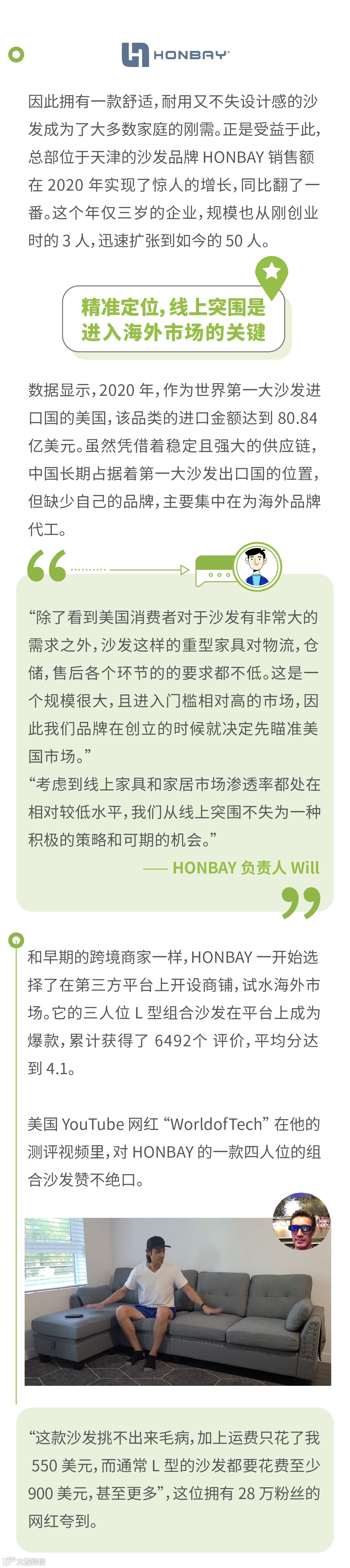 导读:成功案例 | 两年之内销量翻倍,HONBAY沙发突围美国市场