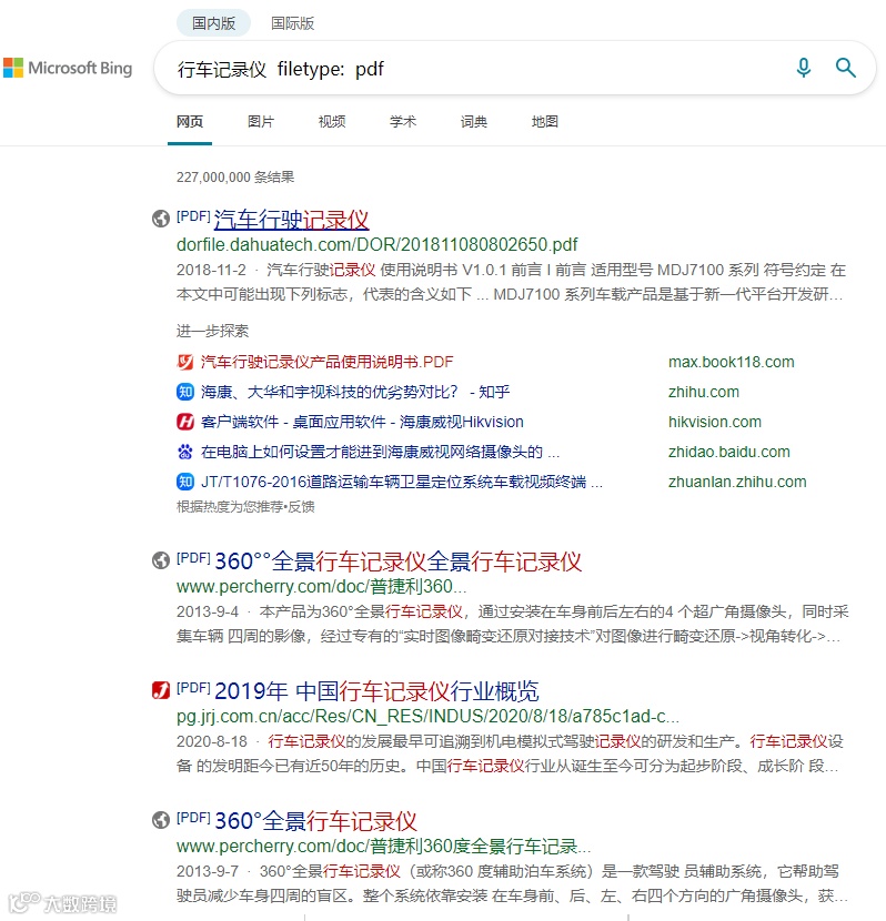 比如要找PDF关于行车记录仪,输入指令: