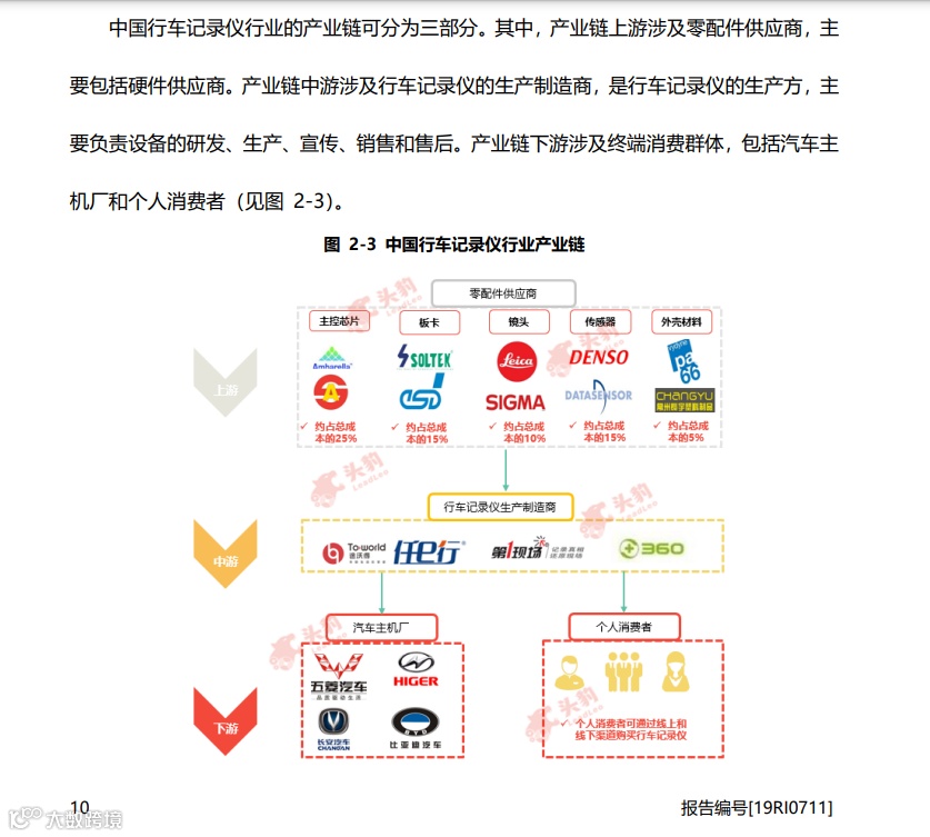 找到行车记录仪的产品报告,从报告当中,可以看到整个行车记录仪产业链的上中下游包含的信息,以及一些竞品的信息