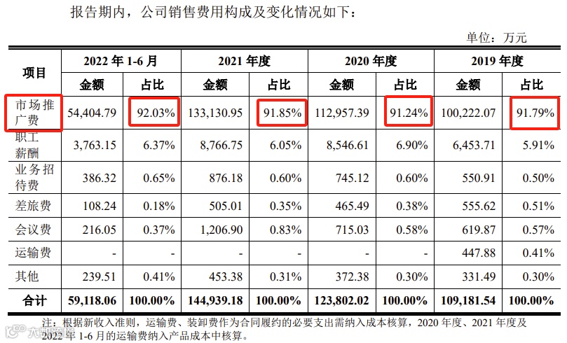 销售费用中,市场推广费占91%以上,具体包括学术推广、渠道维护、信息调研和会议推广等。
