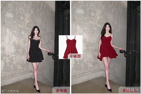 商品重绘(换装功能):根据商品模型或平铺图,对生成不满意的商品整体或细节进行二次重绘